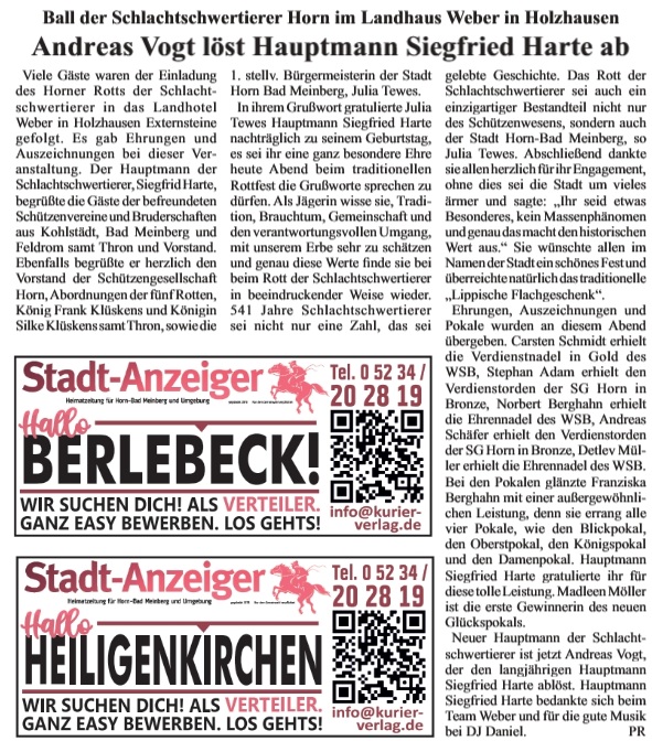 vom 27.03.2026 ![]() vom 27.03.2026 ![]() ![]() vom 16.03.2026 ![]() vom 06.03.2026 ![]() vom 18.02.2026 ![]() vom 13.02.2026 Jahreshauptversammlung der Schützengesllschaft Horn von 1544 in der Burgscheune Max Steinbacher erhielt die Verdienstnadel in Gold ![]() |